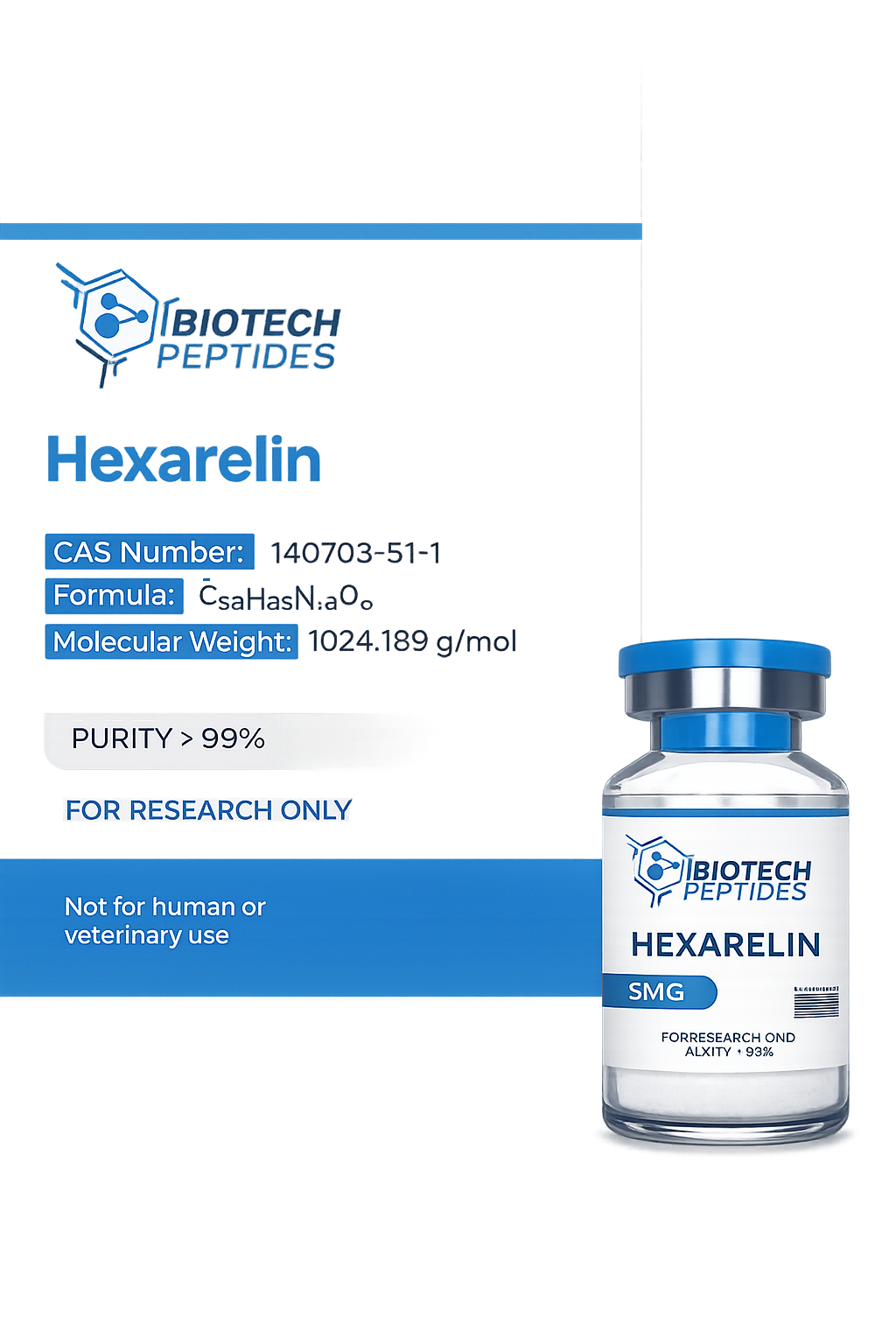 Our Hexarelin peptide for sale is produced in controlled environments and carefully packaged. Each vial of Hexarelin powder is sealed to prevent contamination.