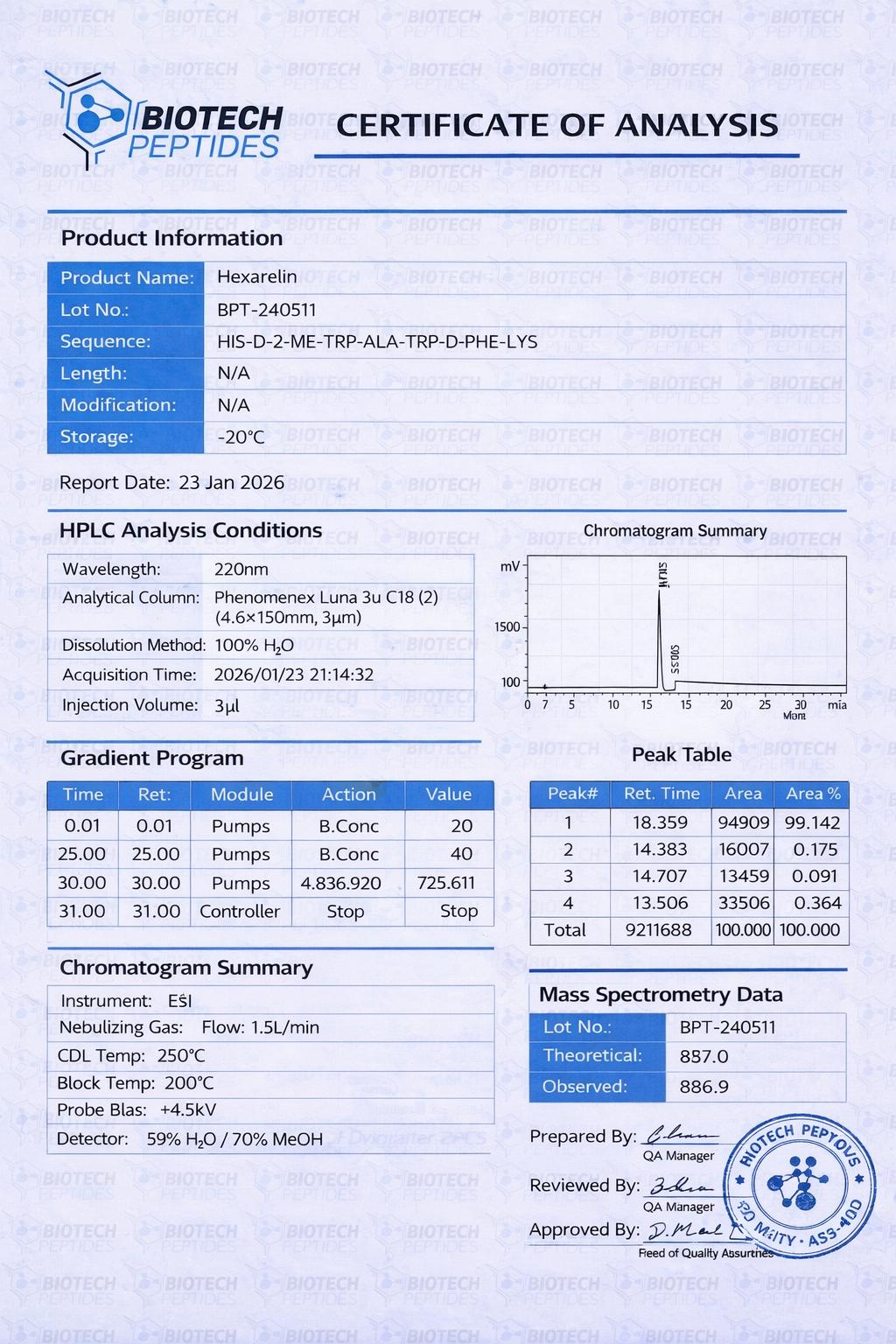 When you purchase Hexarelin, you want accuracy and reliability. That is what we deliver.